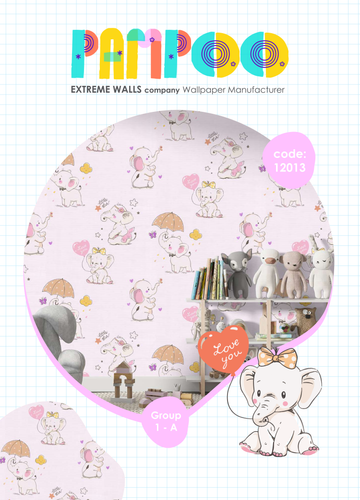 کاغذ دیواری پمپو مخصوص کودک طرح فیل های کوچک صورتی کد 12013
