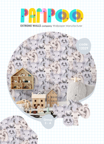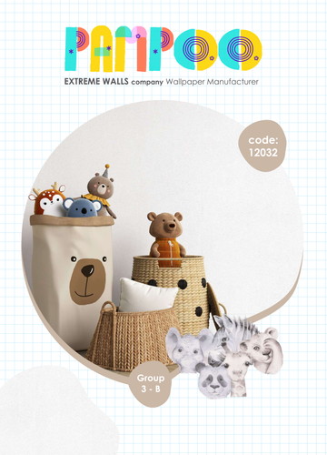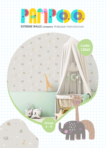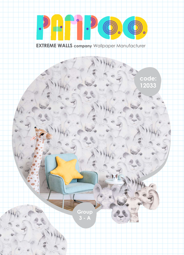 کاغذ دیواری پمپو مخصوص کودک طرح حیوانات طوسی کد 12033