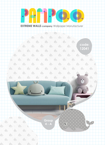 کاغذ دیواری پمپو مخصوص کودک طرح نهنگ های دریایی طوسی / سفید کد 12041