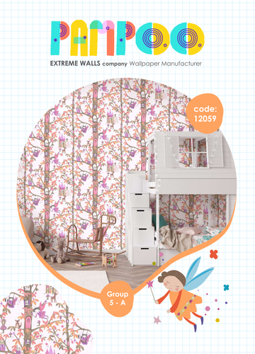 کاغذ دیواری پمپو مخصوص کودک طرح جنگل پریان چندرنگ کد 12059