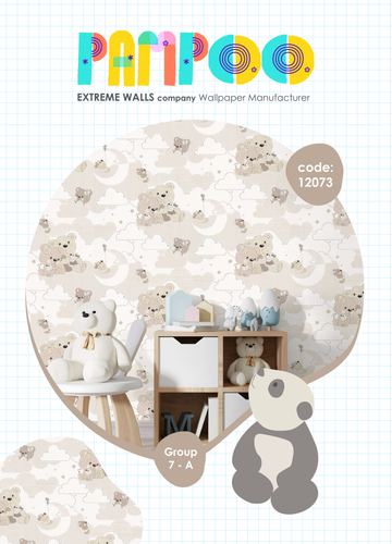 کاغذ دیواری پمپو مخصوص کودک طرح خرس های عروسکی کرم / قهوه ای کد 12073