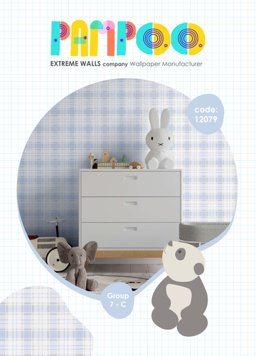 کاغذ دیواری پمپو مخصوص کودک طرح چهارخونه آبی کد 12079