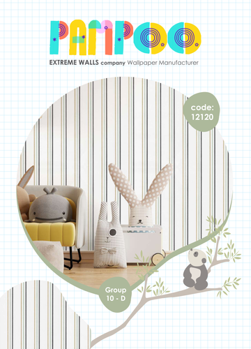 کاغذ دیواری پمپو مخصوص کودک طرح راه راه طوسی کد 12043