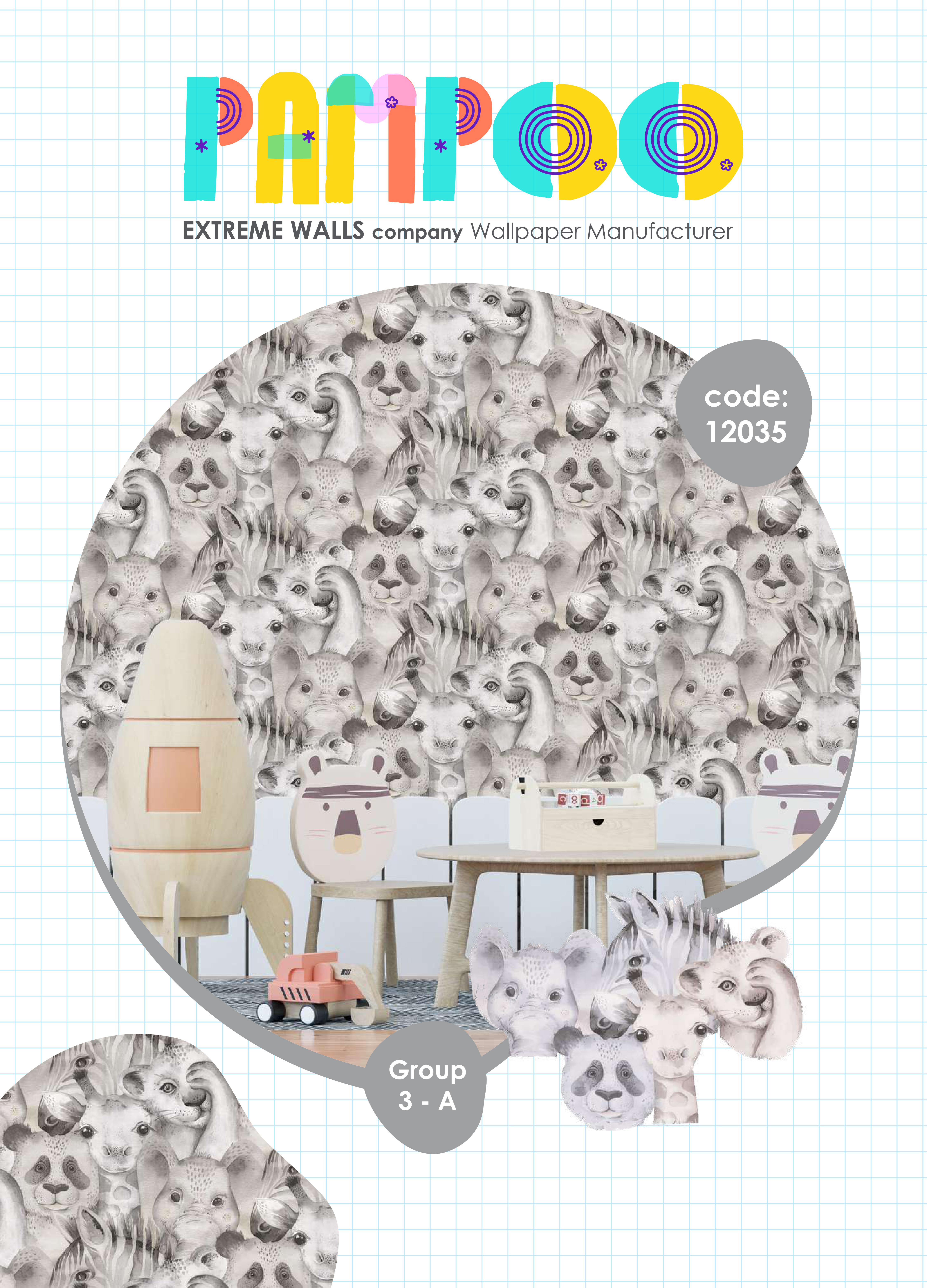کاغذ دیواری پمپو مخصوص کودک طرح حیوانات طوسی کد 12035