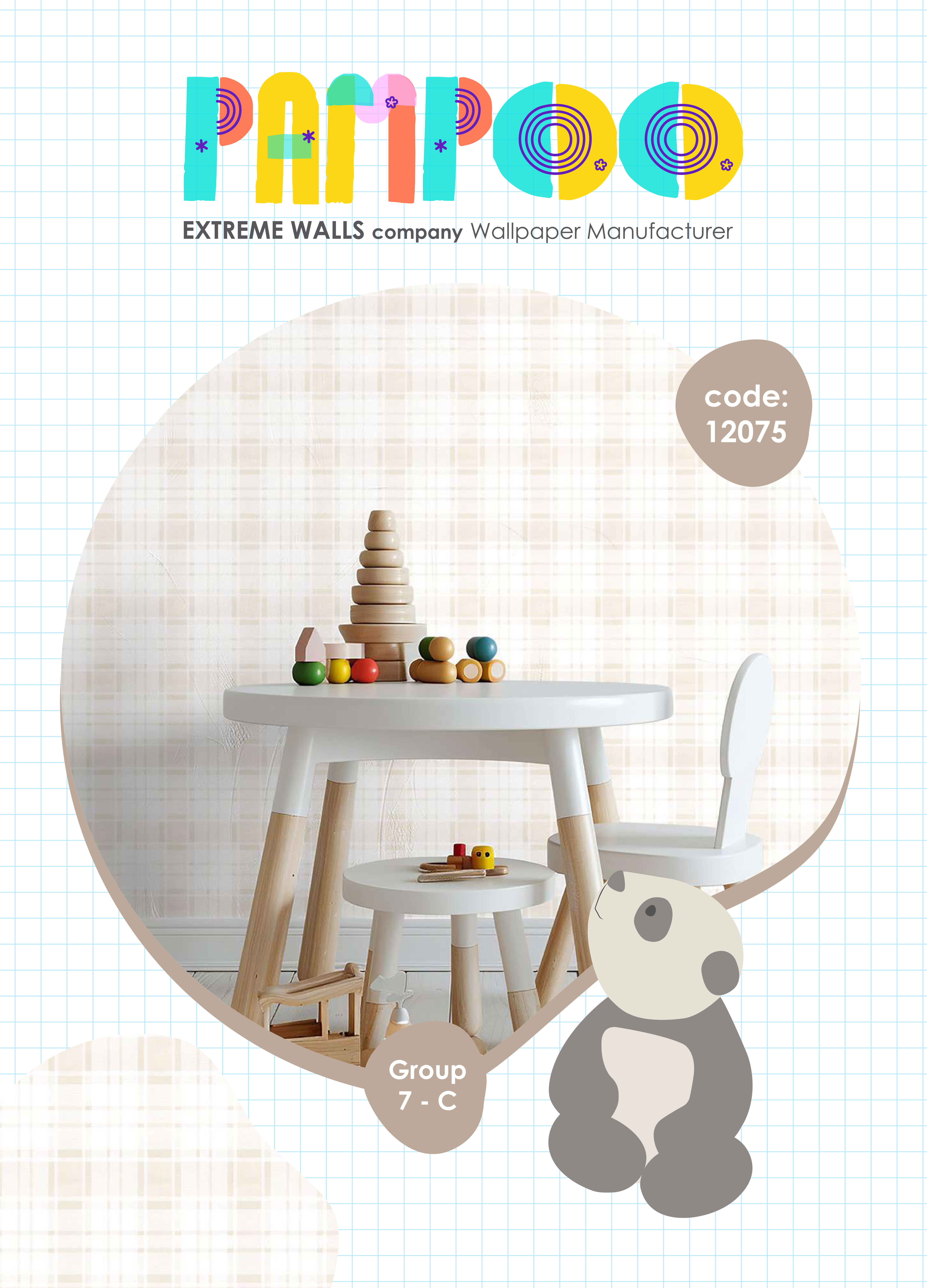 کاغذ دیواری پمپو مخصوص کودک طرح چهارخونه کرم کد 12075